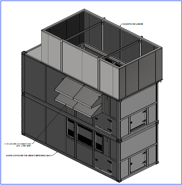 Custom absorptive acoustic plenums were designed to enclose the combustion piping and SCR systems at the top of each generator. Each plenum was constructed on an integrated structural frame engineered to interface directly with the generator enclosure’s existing framework.