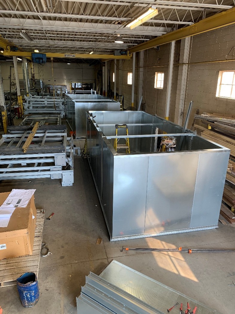 To address secondary noise emissions, Parklane designed and manufactured acoustic hoods for the unit cooler ventilation intakes. These hoods were mounted directly to the enclosure’s structural tubing and included: